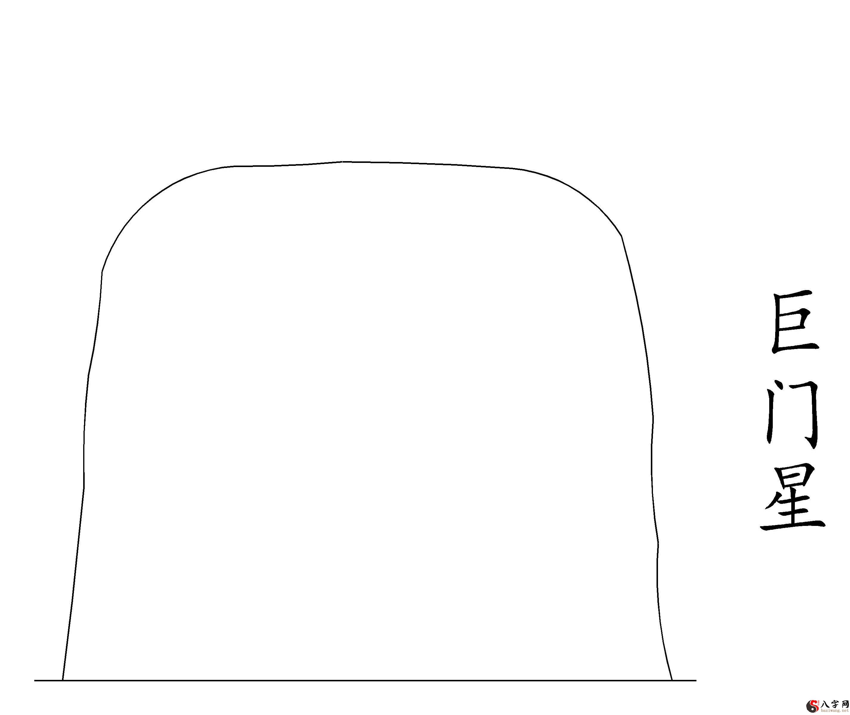 2.巨门星:巨门星型体如顿鼓,山型极大、公路边坡园正端重、峰顶平,因此巨门星为福星,显而易见巨门星属土;
