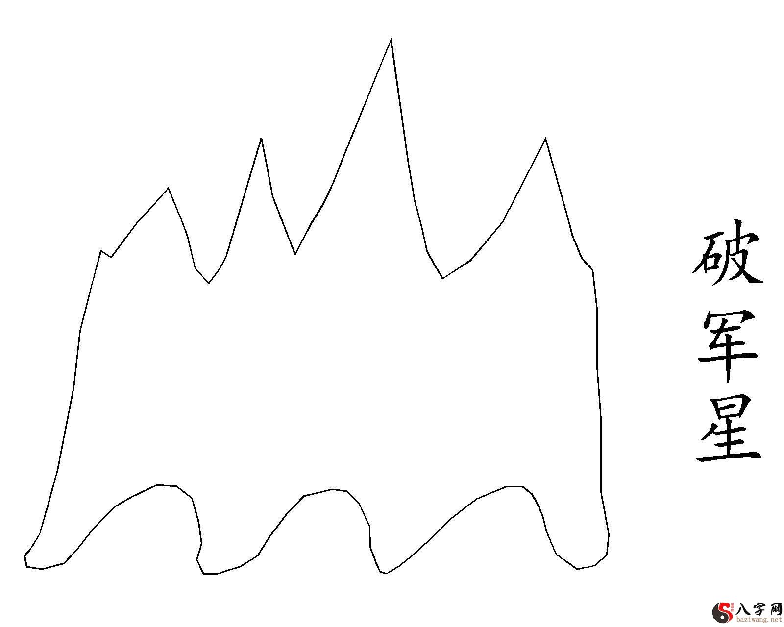 齿耙,山腳又就像爪形由诸多破石组成或山下由诸多斜飞的小山坡组成,即破军星也属金却不可金形之正,山上和山下皆为凶,故破军星为凶。