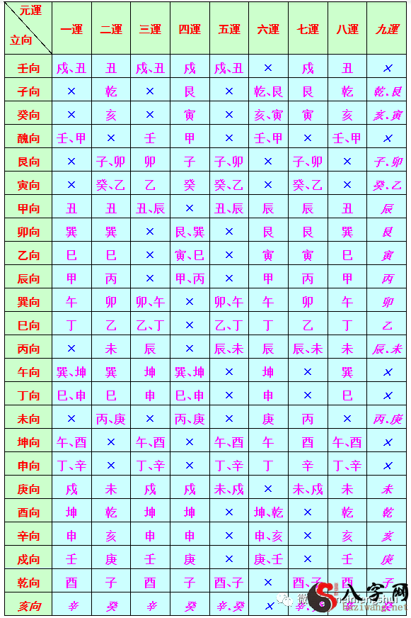 三元九運二十四向能用城門表